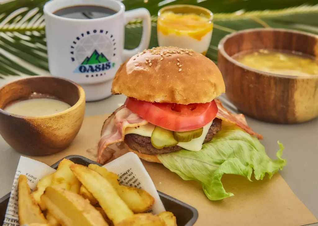 焼きたてバンズのハンバーガーと、香り高い焙煎コーヒーで贅沢な朝。